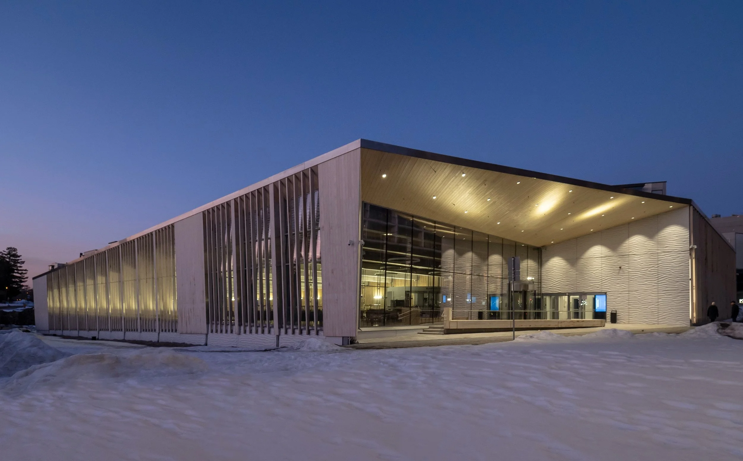 Kaikki uimahallitilat altaineen sekä puku- ja pesuhuoneineen sijaitsevat kerrosta alempana yhdessä ja samassa tasossa, mikä on olennaista liikkumisesteisten asiakkaiden kannalta. Pääsisäänkäyntialue on esteetön, ja sen materiaalit katusuunnitelman mukaisia. Itä- ja länsisivulla suoran auringonvalon lämpö- ja häikäisyvaikutusta rajoitetaan puurakenteisilla pystyslamellleilla.